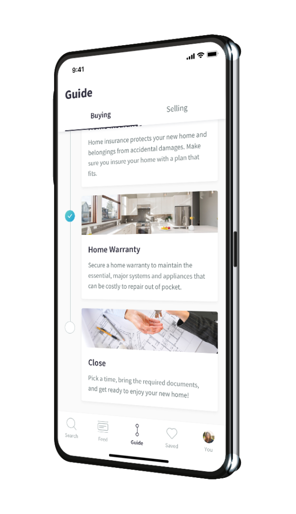 KW’s app solves that through first-of-its-kind features like Guide: a step-by-step action plan that allows clients to buy, sell, and transact in one place.